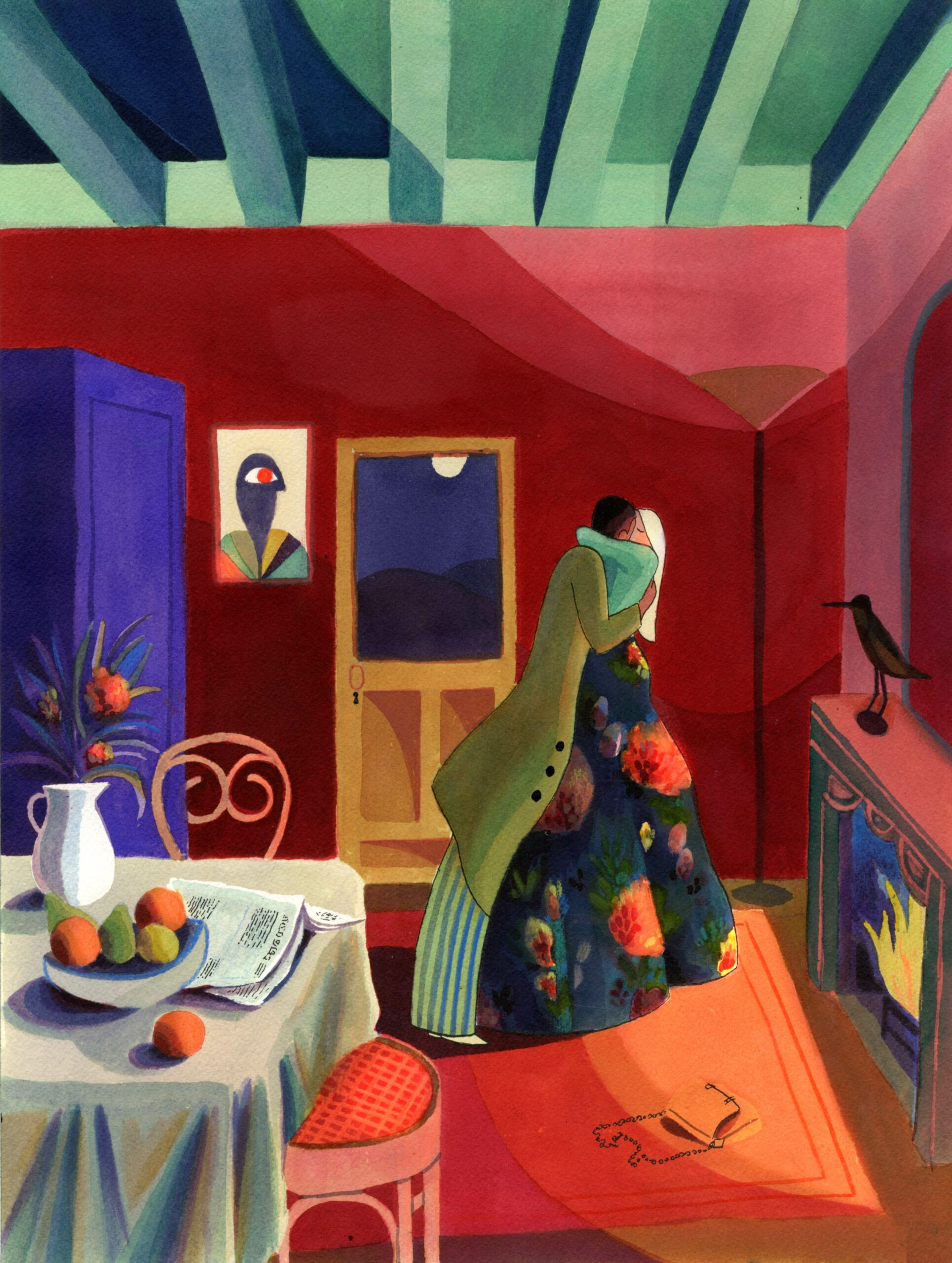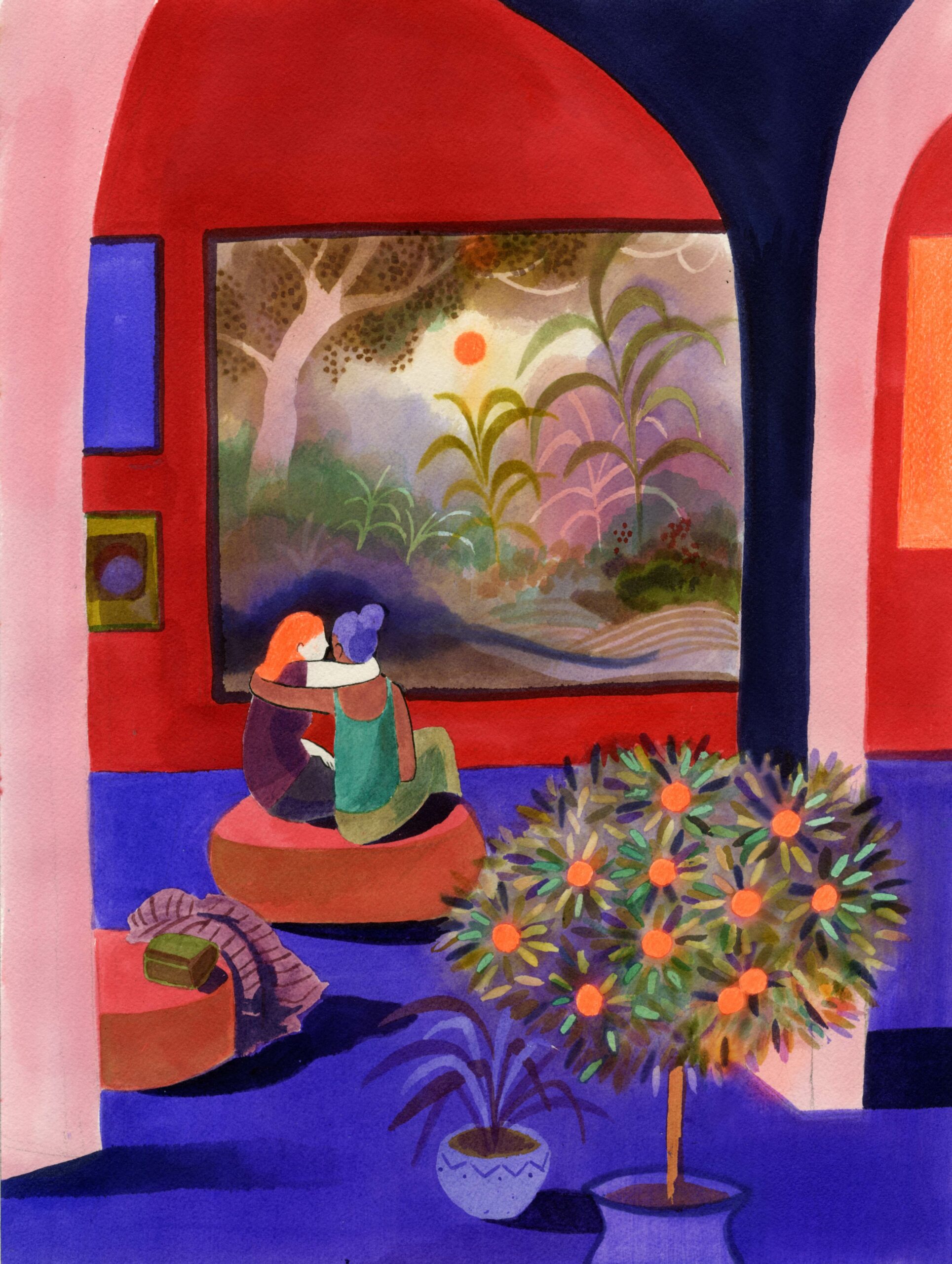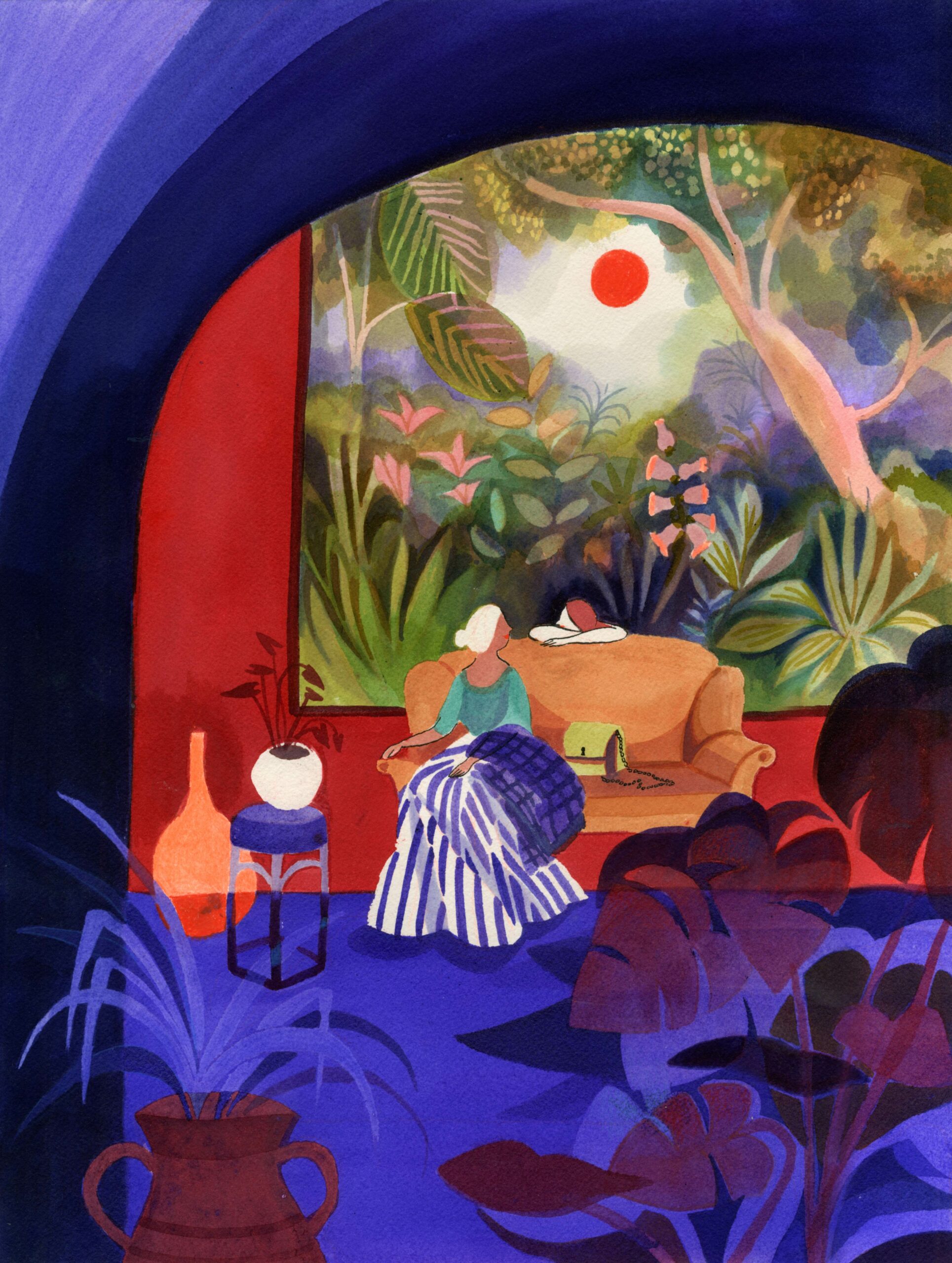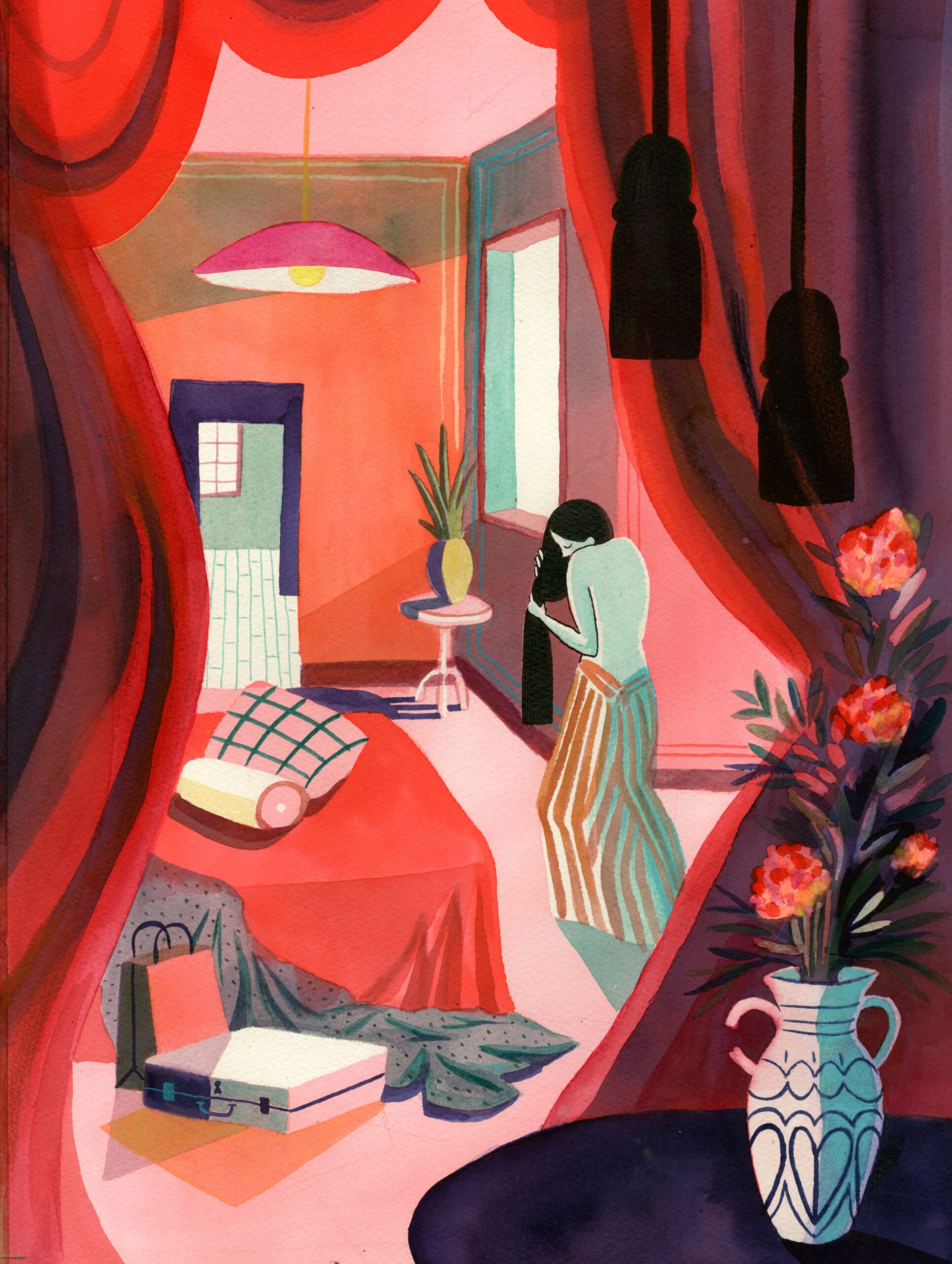 Envie de couleurs dans les moindres replis, de racines qui s’invitent là où l’on pourrait se croire enfermés, les tiges et les feuilles qui nous rappellent que tout part d’une graine, qu’on a tous intérêt à laisser fôlatrer. La Slow Galerie accueille la nouvelle série de Clémence Monnet : Intérieurs. L’utilisation d’aquarelle et d’un savant mélange de pigments broyés donne de la profondeur et du clair obscur entre outremer et vermillon. Disponibles en tirages à 100 exemplaires, encres pigmentaires, sur le site et sur les murs de la galerie.